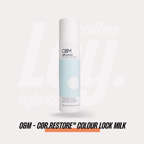 Le CØR.restore™ Colour Lock Milk de O&M est un lait sans rinçage conçu pour préserver la couleur, renforcer la fibre et offrir une douceur longue durée.